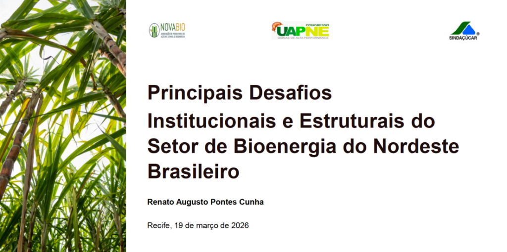O presidente da NovaBio, Renato Cunha, tratou, na última quinta-feira (19), no Congresso de Usinas de Alta Performance Norte-Nordeste 2026 [UAPNE], em Recife (PE), dos principais desafios institucionais e estruturais do setor de bioenergia da região Nordeste.